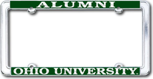 Slim design compatible with most license plates. Laser engraved chrome with green accent. Top line: ALUMNI. Bottom line: OHIO UNIVERSITY (with paw prints) ... Return Document